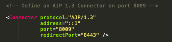 在tomcat中有兩個連接器,一個是監(jiān)聽在8080端口,負責建立web的HTTP連接,一個是監(jiān)聽在8009端口,負責Tomcat與其他HTTP服務器進行集成。配置文件server.xml中,關于AJP的配置項默認是關閉的,若需要開啟,將注釋符去掉,重新啟動Tomcat即可。