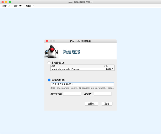 通過java自帶的jconsole來連接我們配置jmx端口。